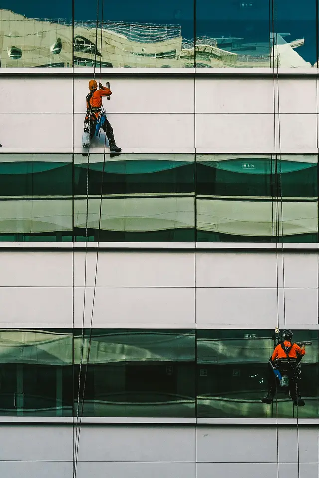 Professional window cleaning for corporate offices, maintaining a clean, professional image.